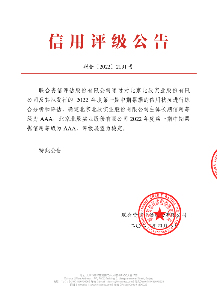 联合资信:北京北辰实业股份有限公司2022年度第一期中期票据信用评级报告.pdf