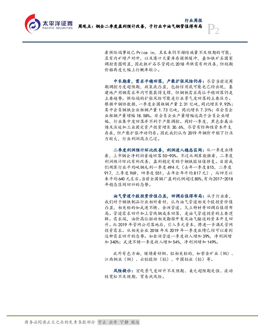 太平洋证券:金属、非金属与采矿行业周观点:钢企二季度盈利预计改善,子行业中油气钢管值得布局.pdf