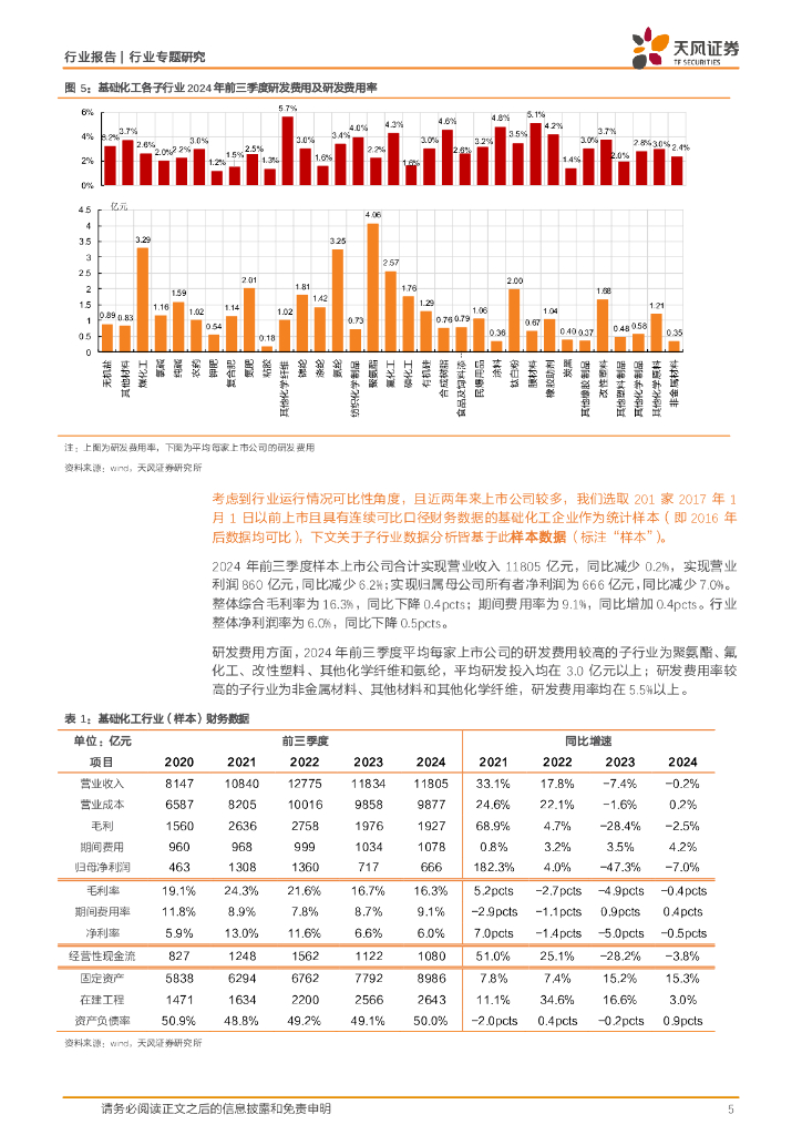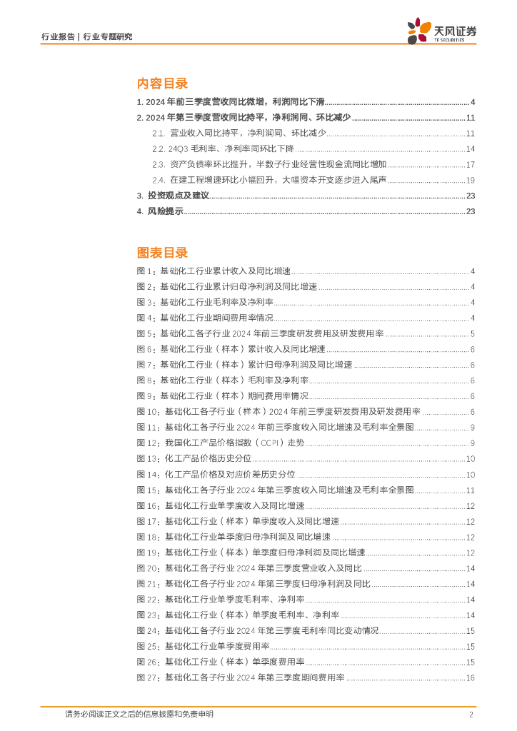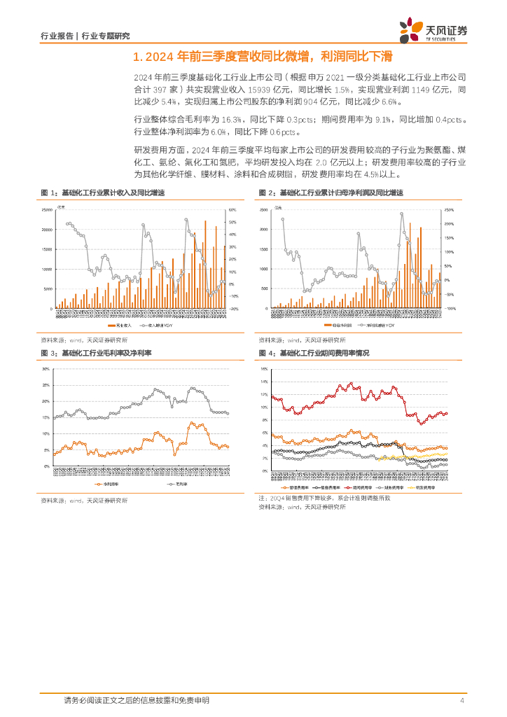 天风证券:基础化工行业专题研究:24Q3盈利同环比下降、大幅资本开支步入尾声.pdf