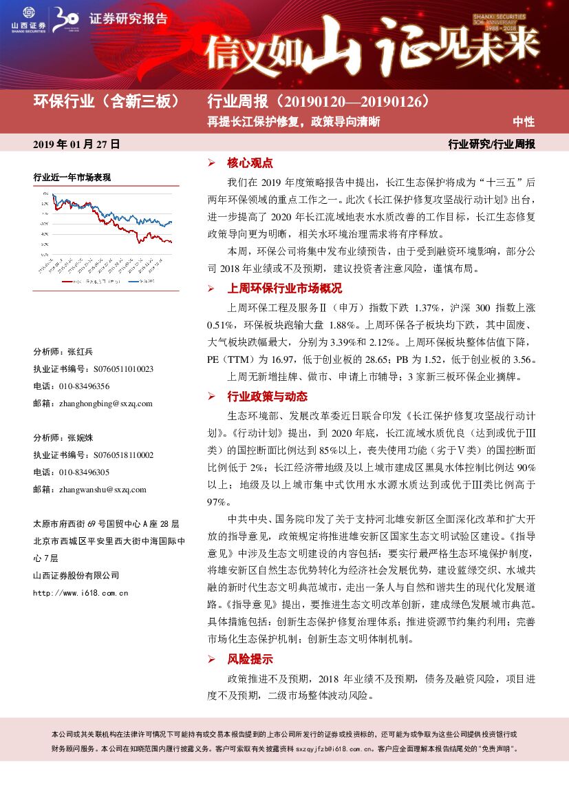 山西证券:环保行业周报:再提长江保护修复,政策导向清晰.pdf