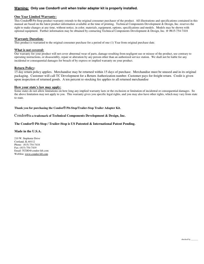 TK-3000 CONDOR® PIT-STOP / TRAILER-STOP TRAILER ADAPTOR KIT INSTRUCTION MANUAL.pdf
