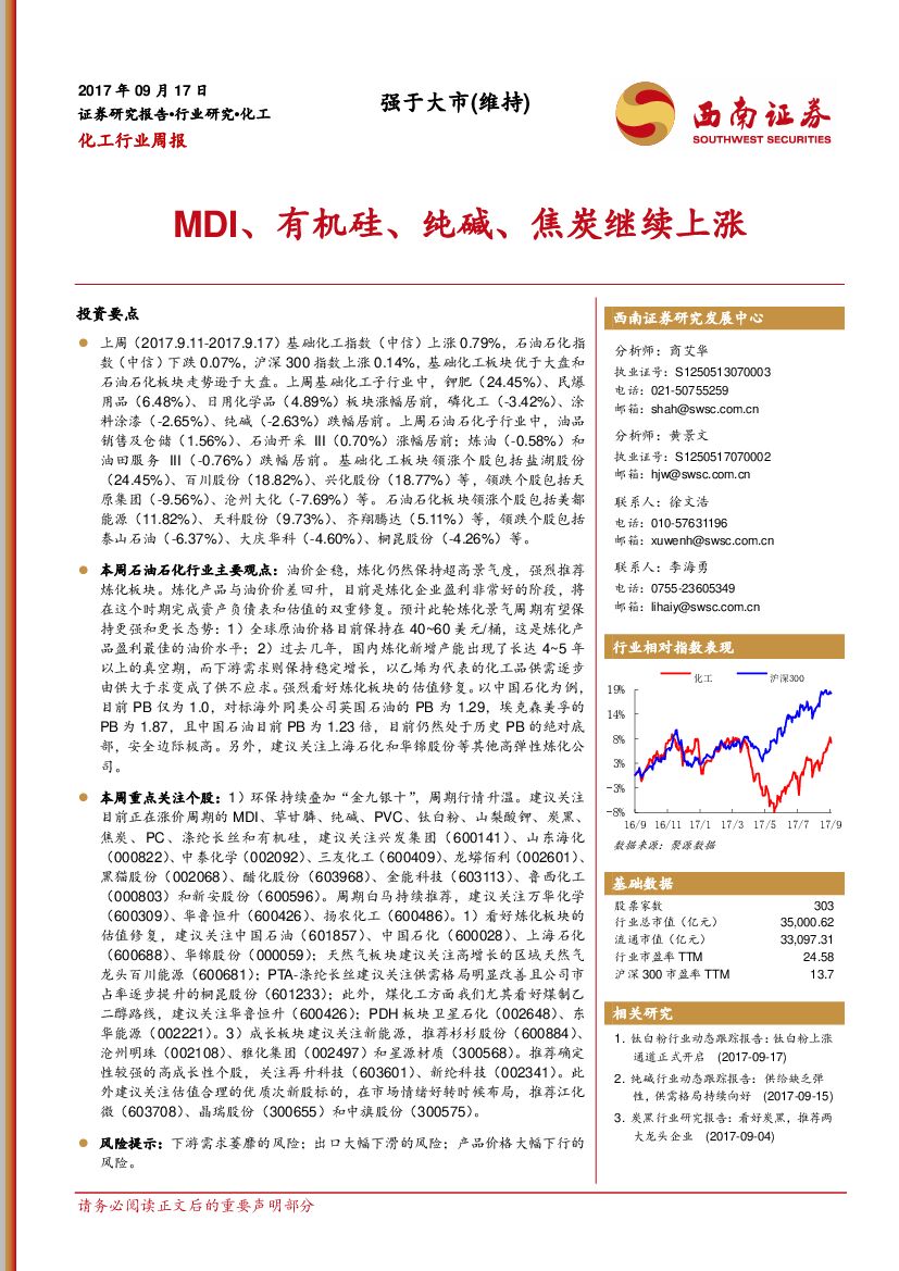 西南证券:化工行业周报:MDI、有机硅、纯碱、焦炭继续上涨.pdf