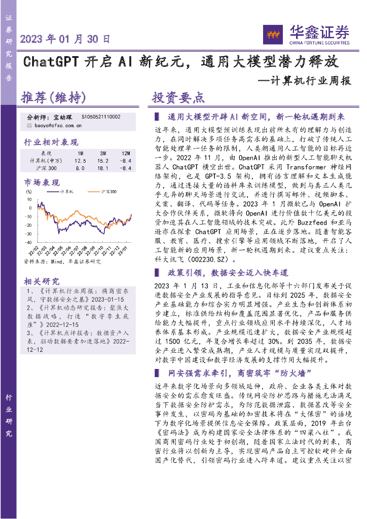 华鑫证券:计算机行业周报:ChatGPT开启AI新纪元,通用大模型潜力释放.pdf