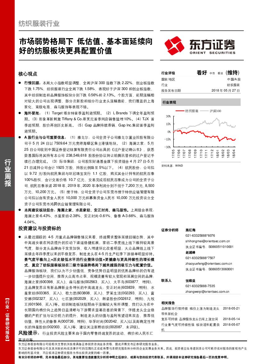 东方证券:纺织服装行业周报:市场弱势格局下 低估值、基本面延续向好的纺服板块更具配置价值.pdf