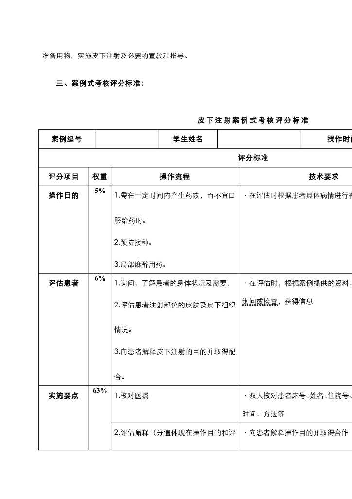 《护理技巧》皮下注射考核案例及评分标准.pdf