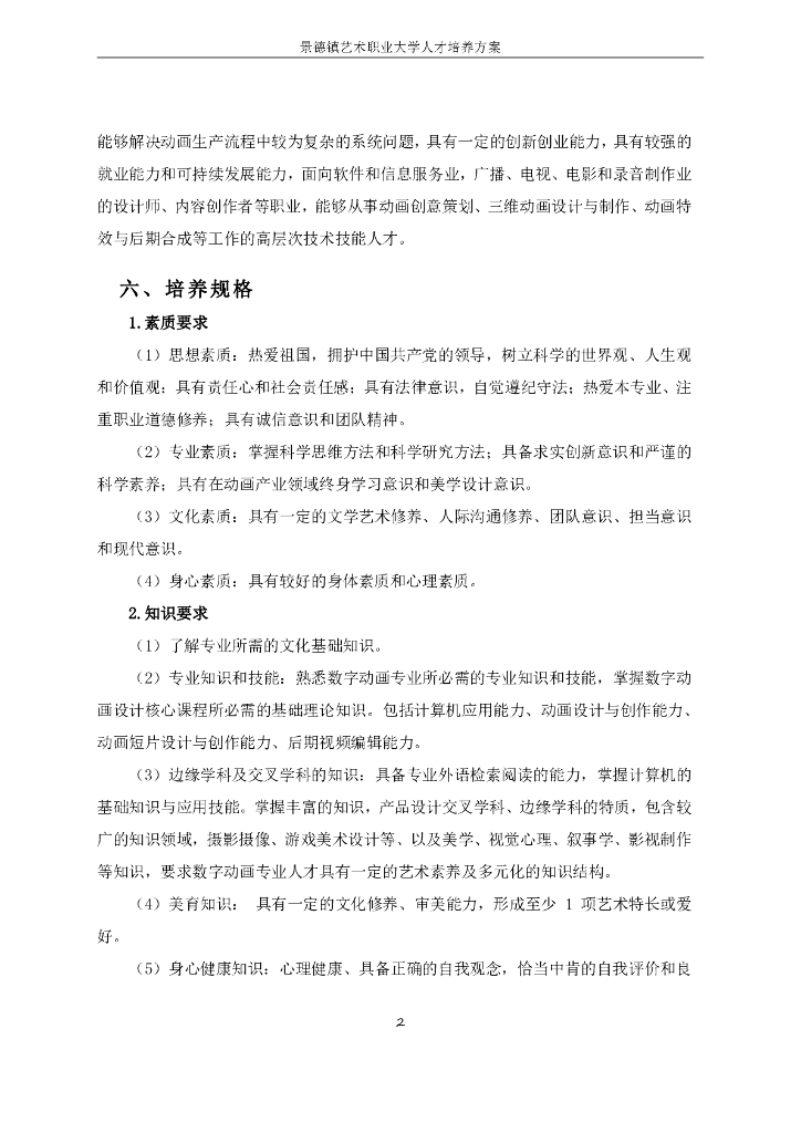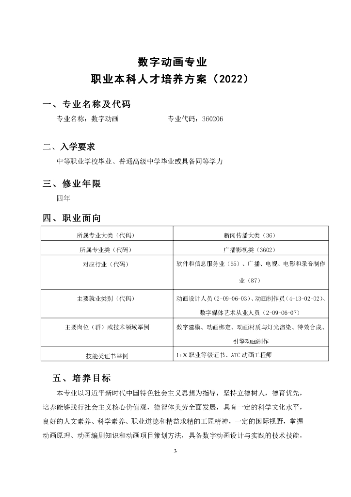 景德镇艺术职业大学数字动画专业职业本科人才培养方案(2022).pdf