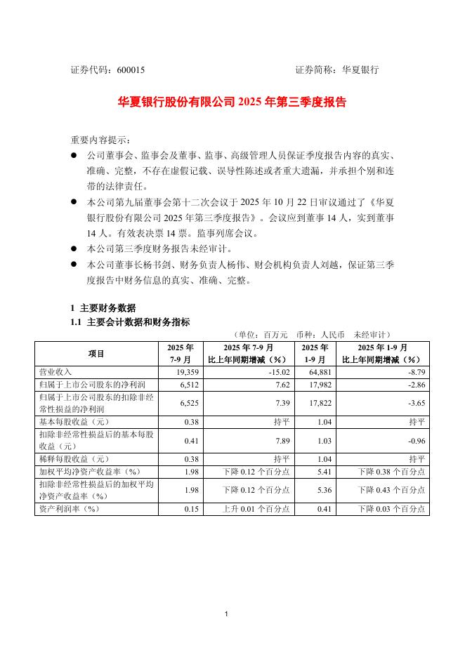 600015-华夏银行:华夏银行2025年第三季度报告.pdf