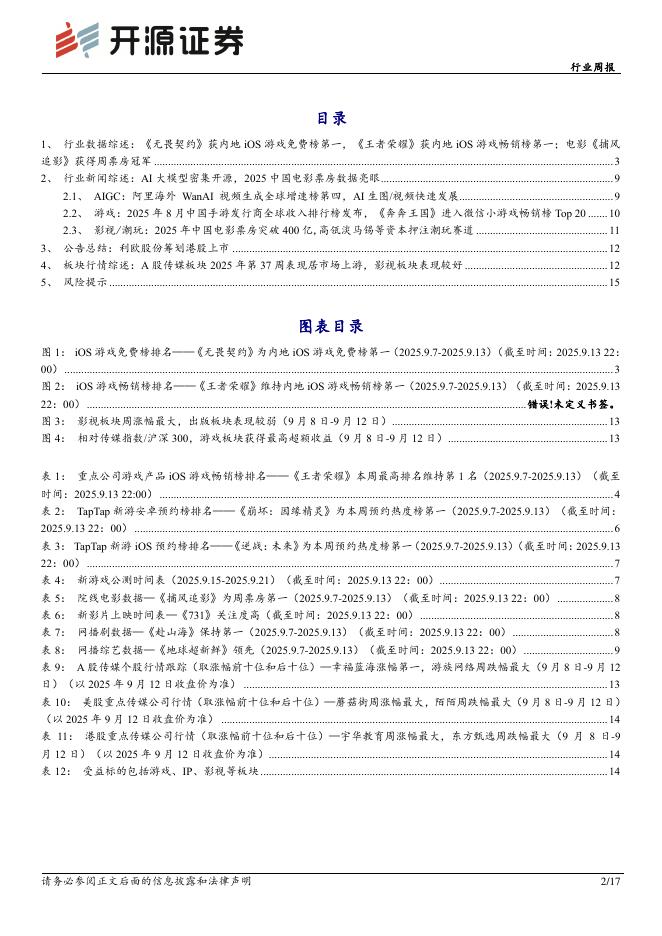 开源证券:传媒行业周报:继续把握游戏、AI、内容创新投资机会