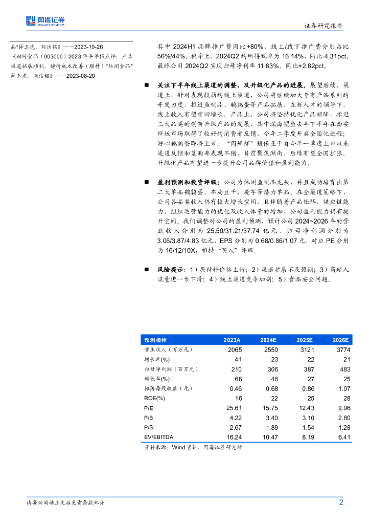 国海证券:劲仔食品(003000)-2024年半年报点评:盈利能力持续改善,线下渠道表现亮眼.pdf