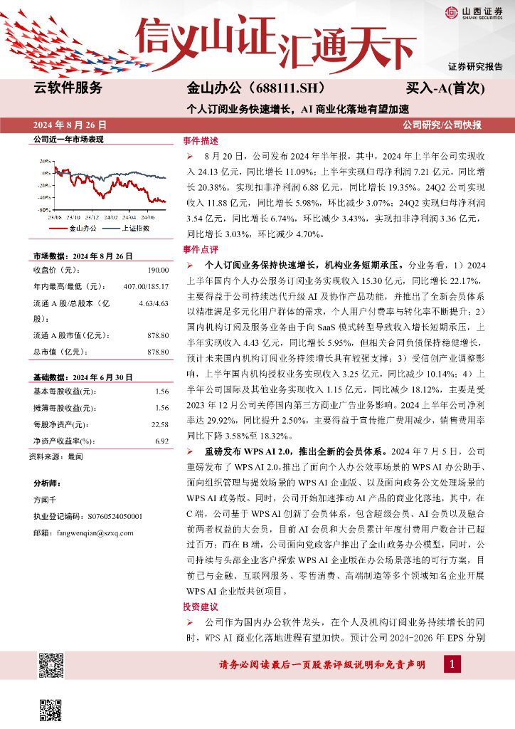山西证券:金山办公(688111)-个人订阅业务快速增长,AI商业化落地有望加速.pdf