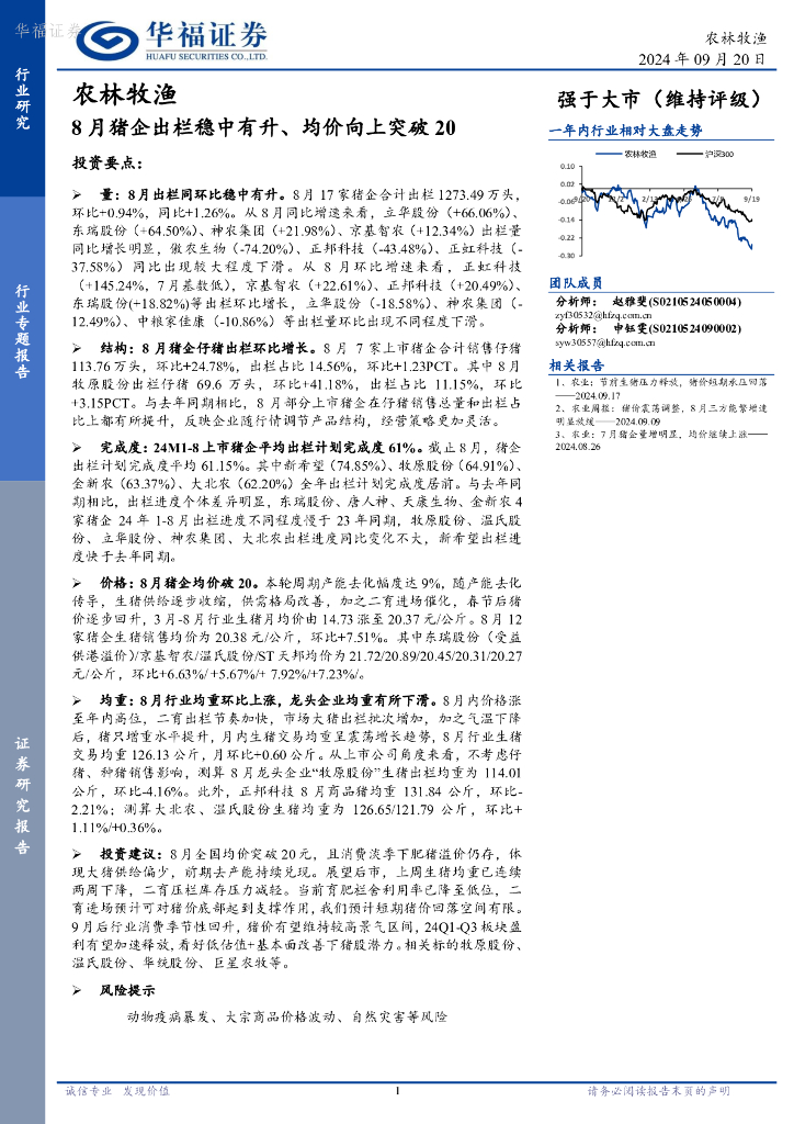 华福证券:农林牧渔行业专题报告:8月猪企出栏稳中有升、均价向上突破20.pdf