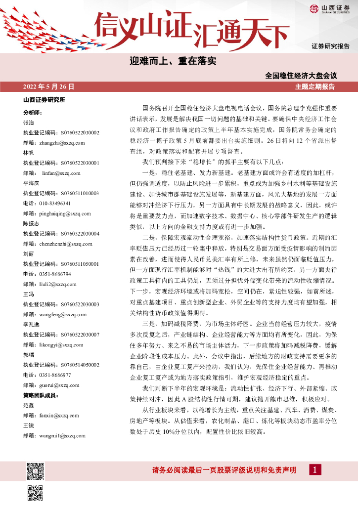 山西证券:全国稳住经济大盘会议:迎难而上、重在落实.pdf