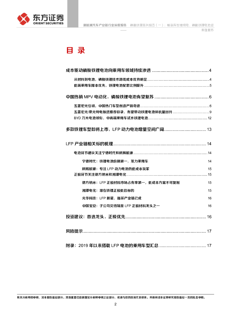 东方证券:新能源汽车产业链行业深度报告:磷酸铁锂系列报告(一):畅销车型推纯电,磷酸铁锂电池迎来强复苏.pdf
