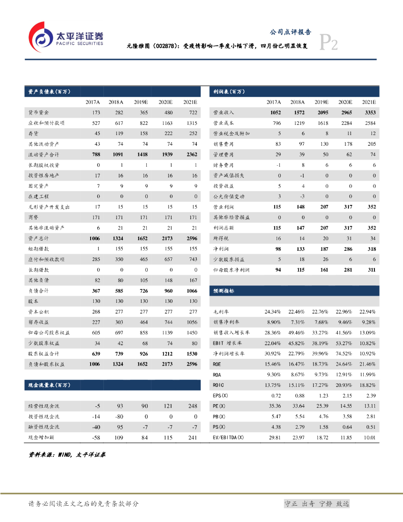 太平洋证券:元隆雅图(002878)-受疫情影响一季度小幅下滑,四月份已明显恢复.pdf