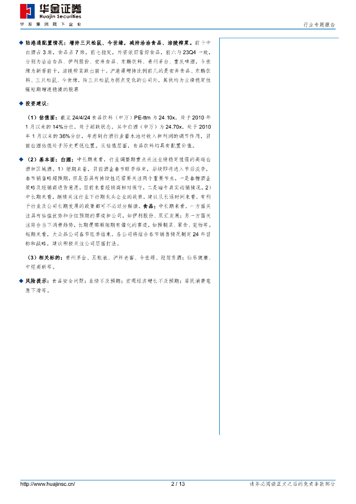 华金证券:食品饮料24Q1持仓分析:白酒加仓食品减仓,盐津铺子首入前20.pdf