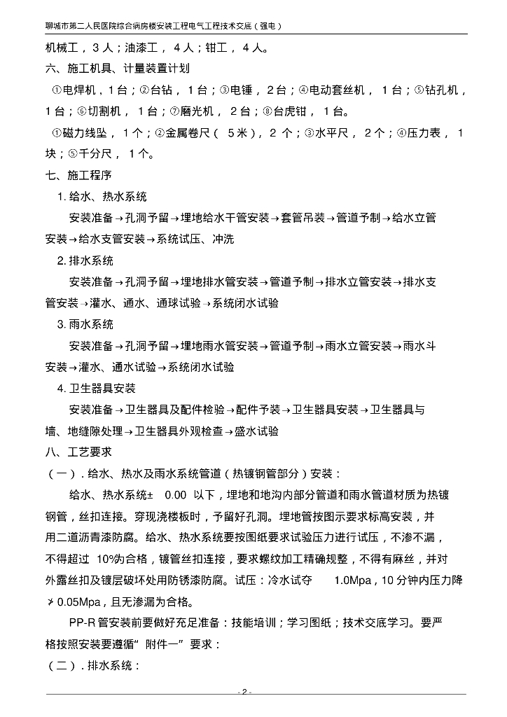 聊城市第二人民医院综合病房楼安装工程给排水工程技术交底.pdf