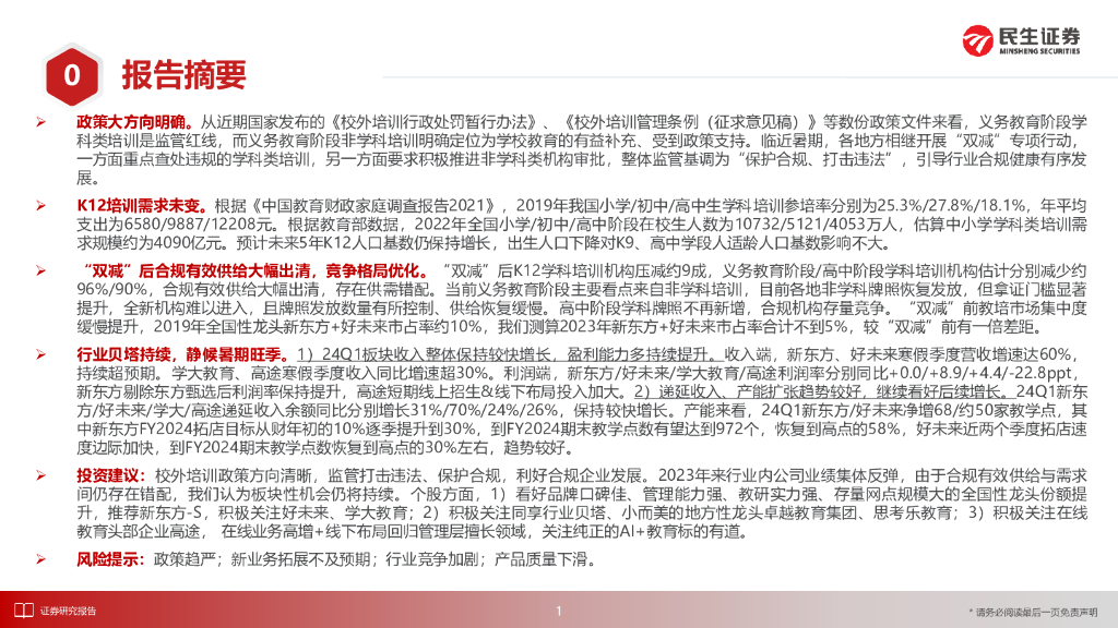 民生证券:K12教培行业2024中期策略:行业贝塔未变,静候暑期旺季.pdf