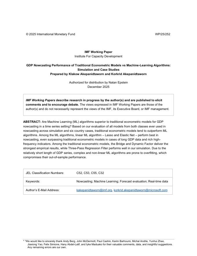 国际货币基金组织:传统计量经济学模型与机器学习算法的GDP预测性能:模拟和案例研究(英文版).pdf