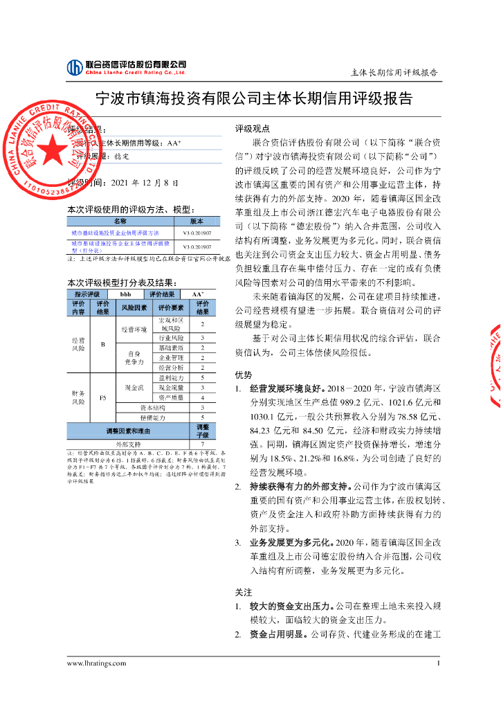 联合资信:宁波市镇海投资有限公司主体长期信用评级报告.pdf