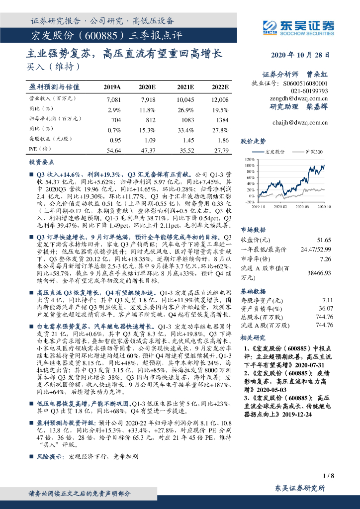 东吴证券:宏发股份(600885)-三季报点评:主业强势复苏,高压直流有望重回高增长.pdf