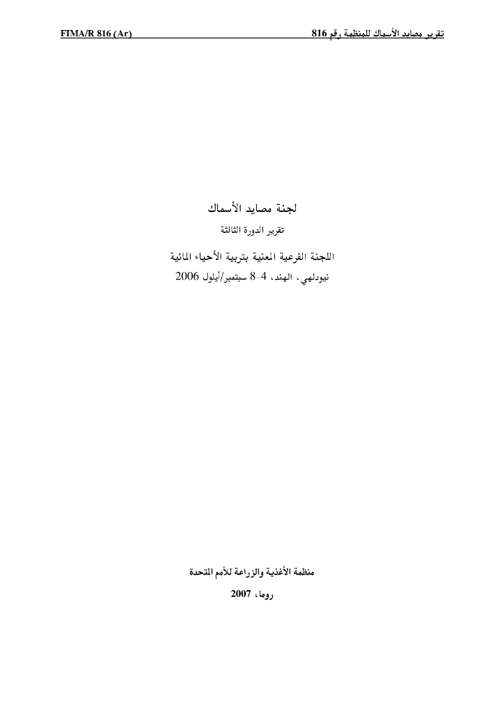 FAO联合国粮农组织:渔业委员会水产养殖分委员会第十三届会议报告(2006年9月4-8日,印度新德里)(阿拉伯语版).pdf
