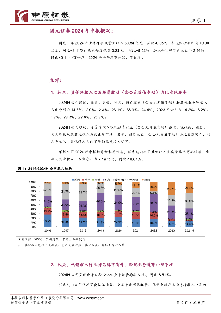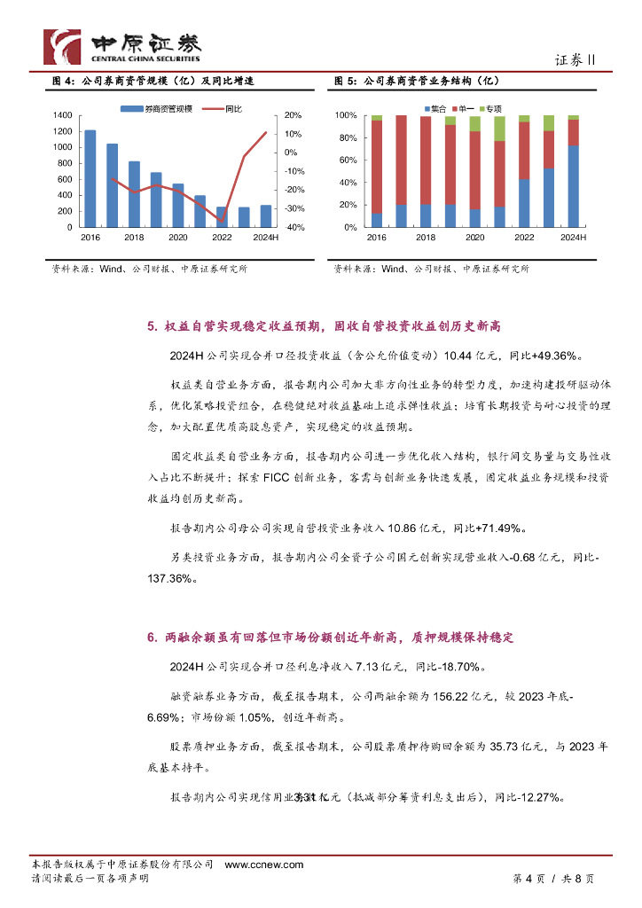 中原证券:国元证券(000728)-2024年中报点评:自营业务同比高增,资管业务提质增效.pdf
