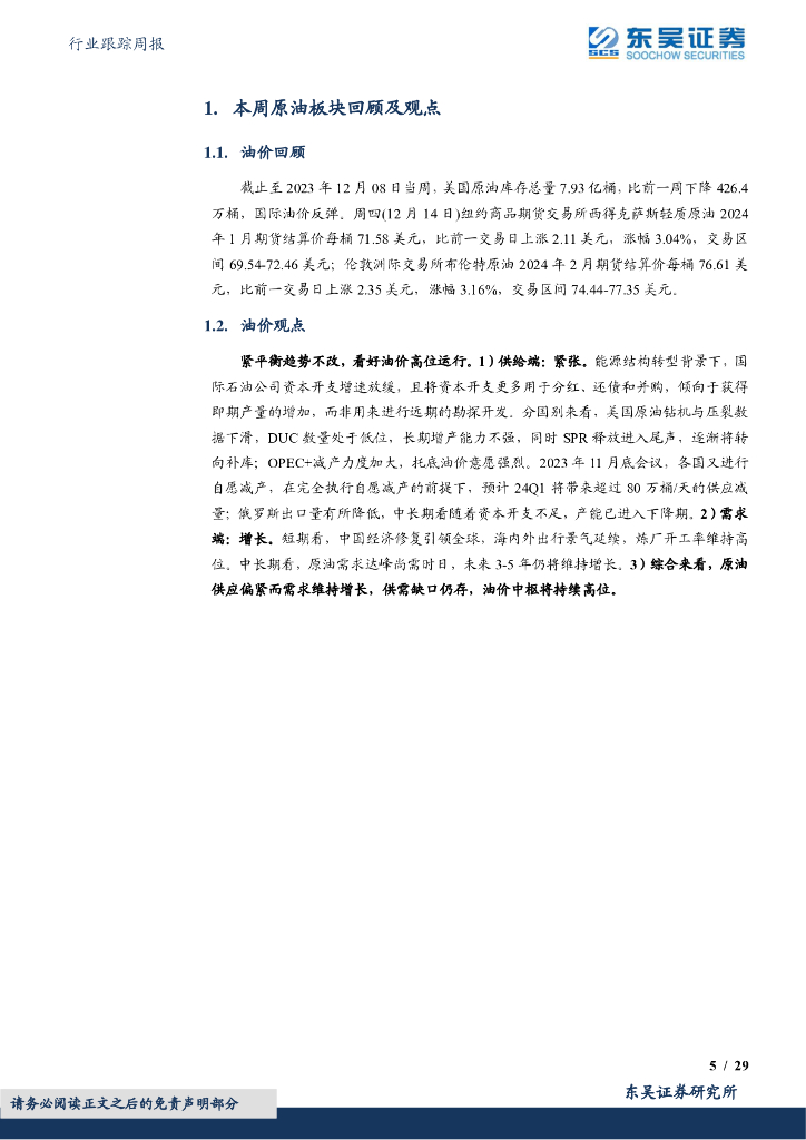 东吴证券:石油石化行业跟踪周报:原油周报:美国原油库存降幅超预期,国际油价跌后反弹.pdf