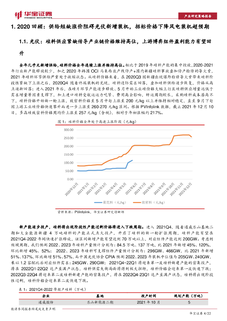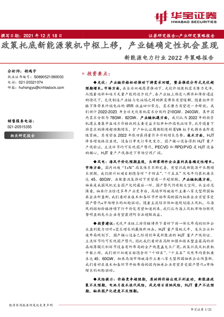 华宝证券:新能源电力行业2022年策略报告:政策托底新能源装机中枢上移,产业链确定性机会显现.pdf