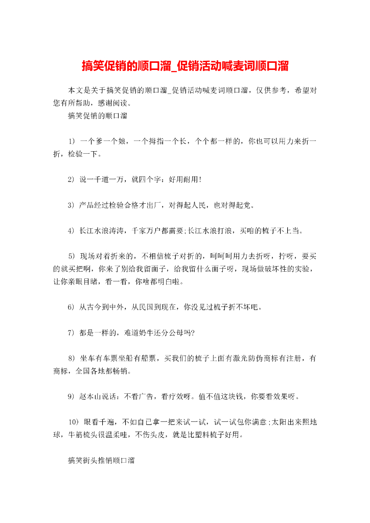 搞笑促销的顺口溜-抖音快手直播间促销活动喊麦词顺口溜.doc