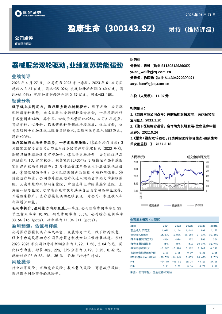 国金证券:盈康生命(300143)-器械服务双轮驱动,业绩复苏势能强劲.pdf