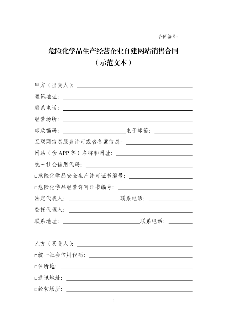 国家市场监管总局:危险化学品生产经营企业自建网站销售合同(示范文本).pdf