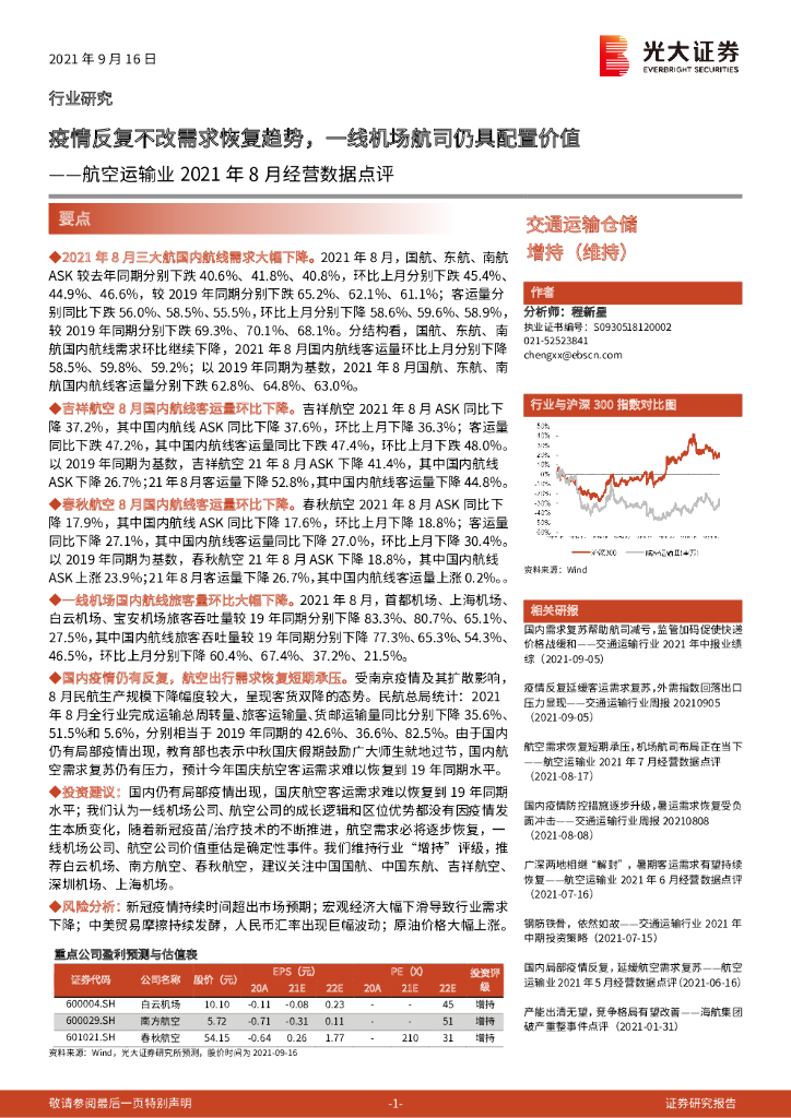 光大证券:航空运输业2021年8月经营数据点评:疫情反复不改需求恢复趋势,一线机场航司仍具配置价值.pdf