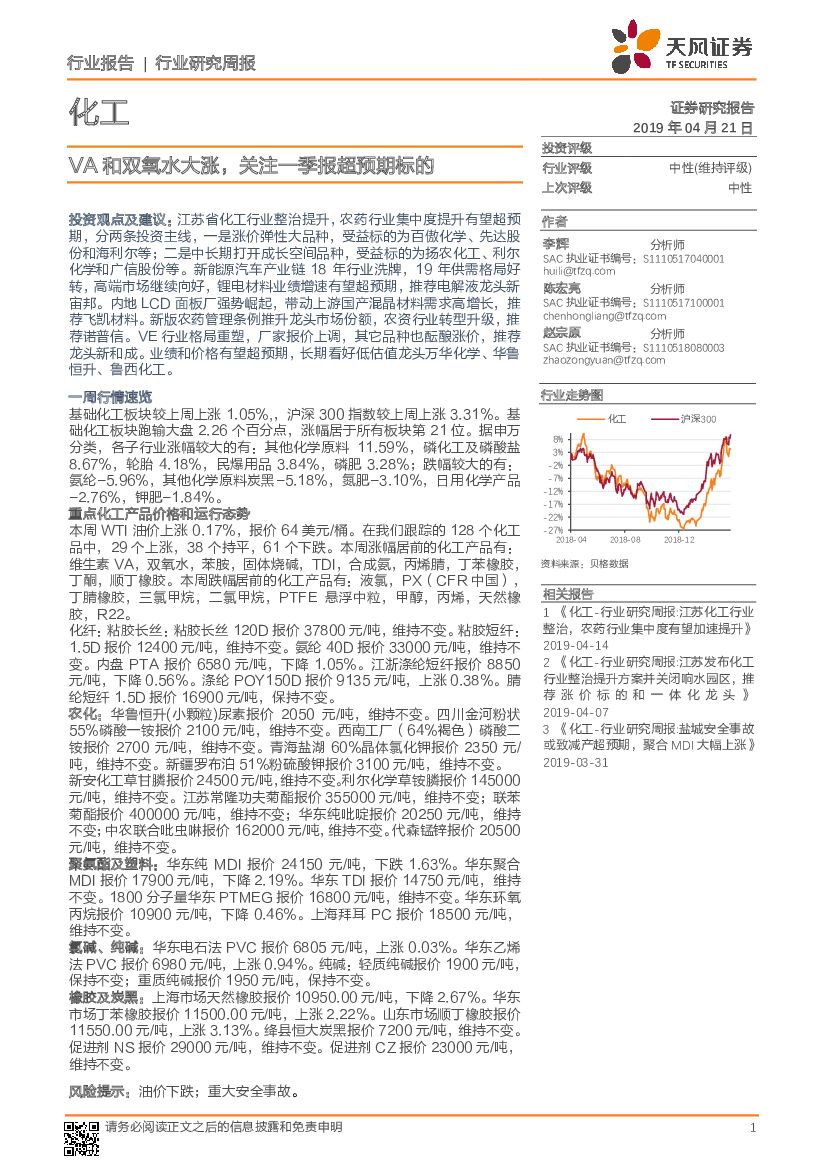天风证券:化工行业研究周报:VA和双氧水大涨,关注一季报超预期标的.pdf