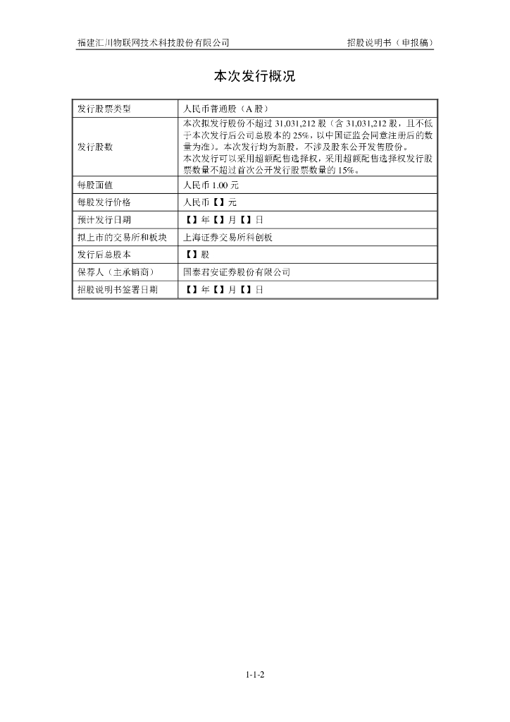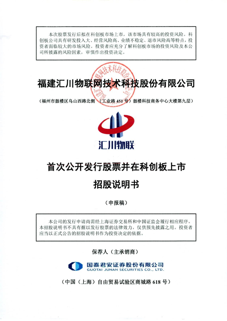 福建汇川物联网技术科技股份有限公司上交所科创板IPO上市招股说明书.pdf