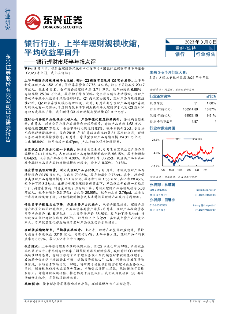 东兴证券:银行理财市场半年报点评:上半年理财规模收缩,平均收益率回升.pdf