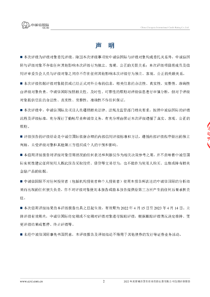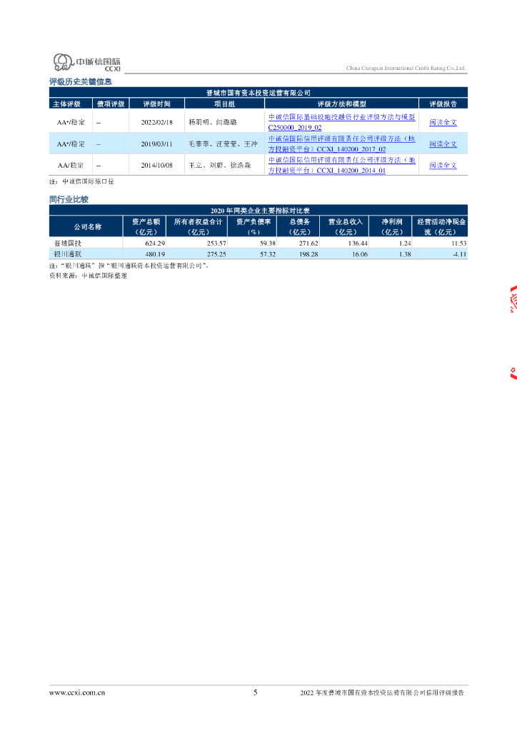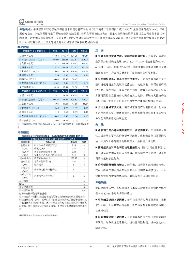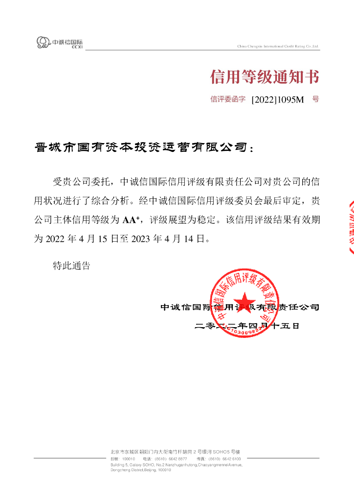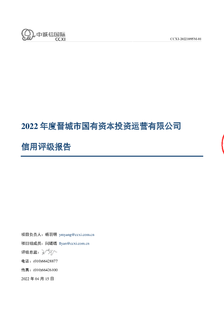 中诚信:2022年度晋城市国有资本投资运营有限公司信用评级报告.pdf