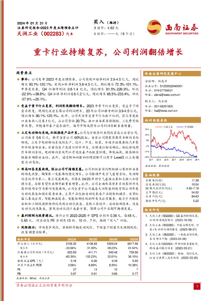 西南证券:天润工业(002283)-重卡行业持续复苏,公司利润翻倍增长.pdf