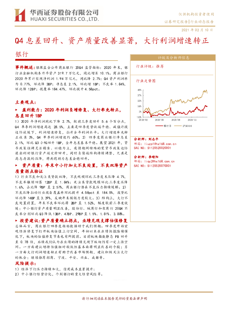 华西证券:银行行业动态报告:Q4息差回升、资产质量改善显著,大行利润增速转正.pdf