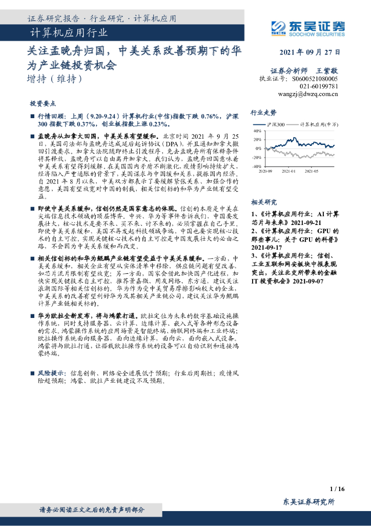 东吴证券:计算机应用行业:关注孟晚舟归国,中美关系改善预期下的华为产业链投资机会.pdf