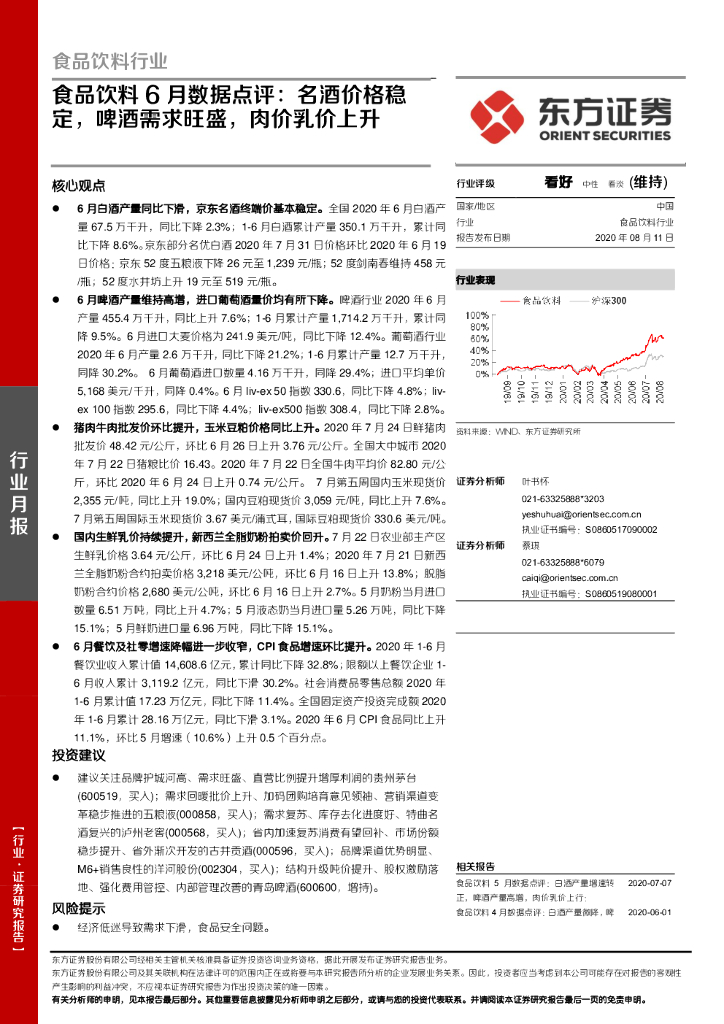 东方证券:食品饮料6月数据点评:名酒价格稳定,啤酒需求旺盛,肉价乳价上升.pdf