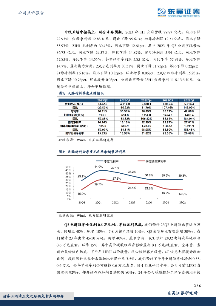 东吴证券:天赐材料(002709)-2023年中报点评:电解液盈利触底,GDR加码海外产能布局.pdf