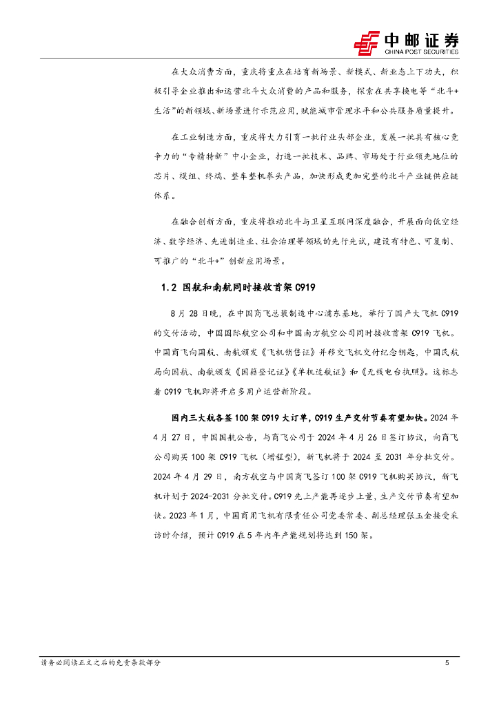 中邮证券:国防军工行业报告:北斗产业进入高质量发展新阶段,国航和南航同时接收首架C919.pdf