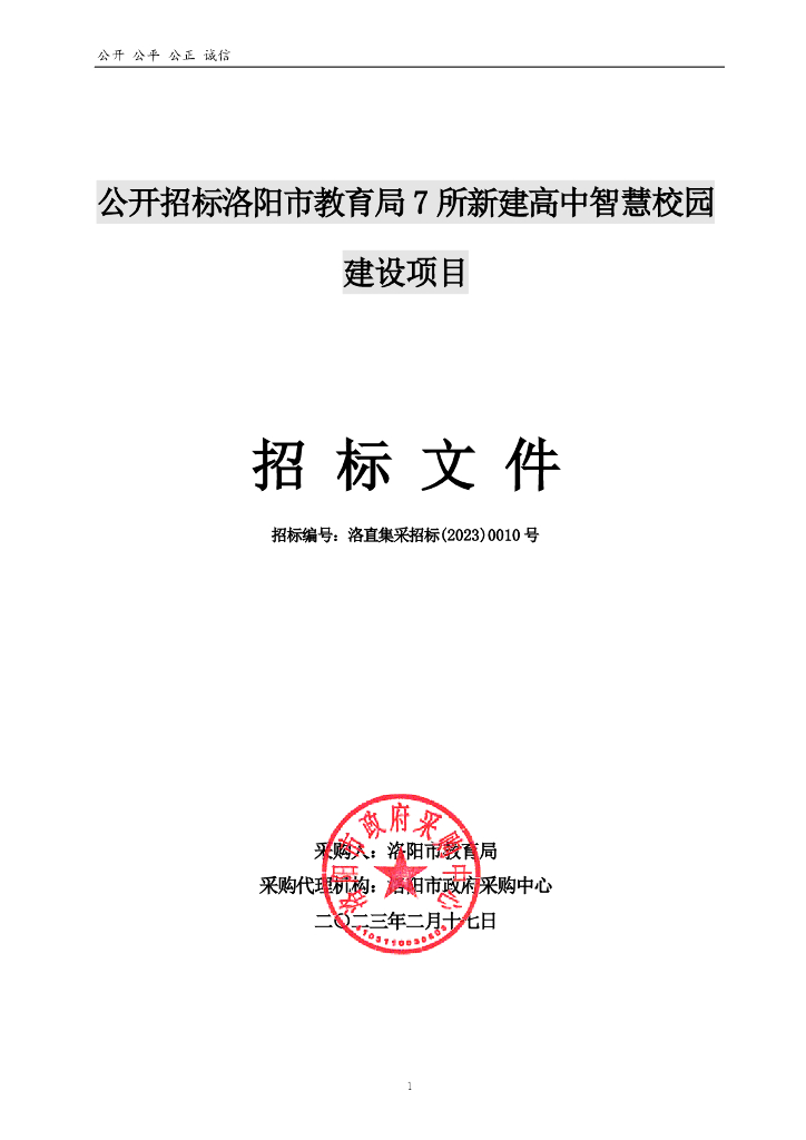 洛阳市教育局7所新建高中智慧校园建设项目招标文件..pdf