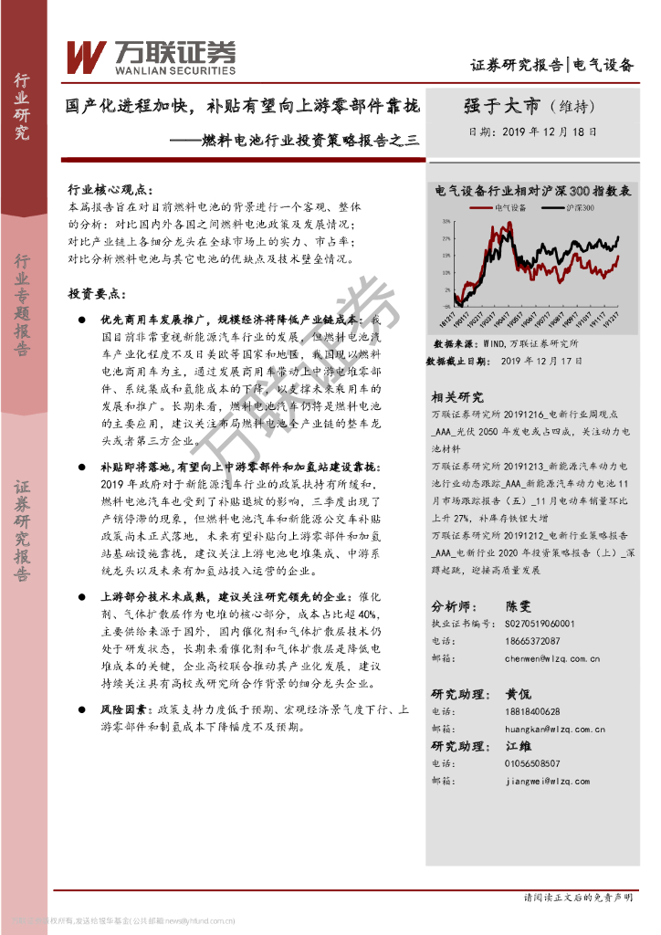 万联证券:燃料电池行业投资策略报告之三:国产化进程加快,补贴有望向上游零部件靠拢.pdf