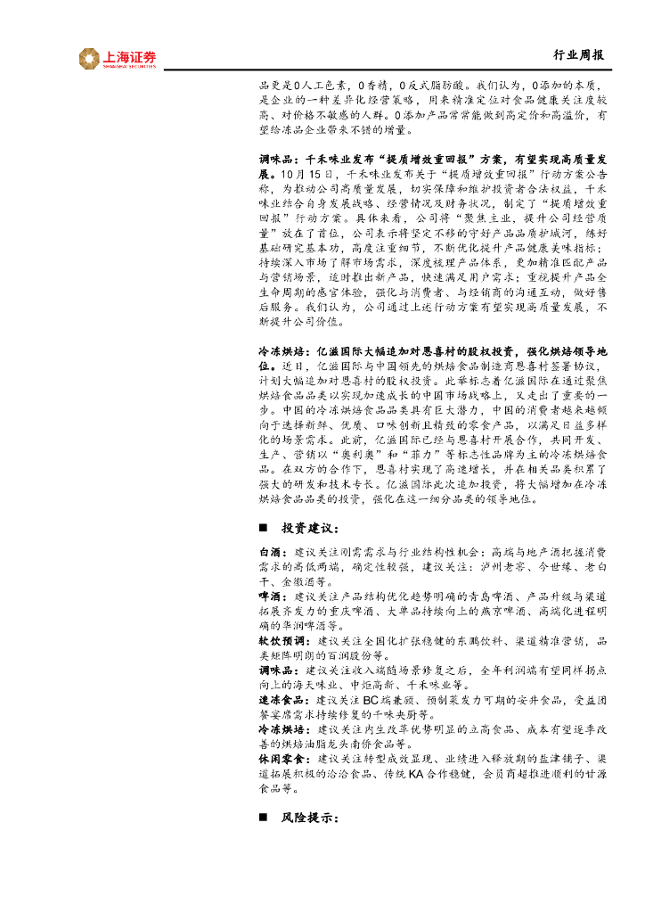 上海证券:食品饮料行业周报:秋糖召开在即,关注需求恢复.pdf