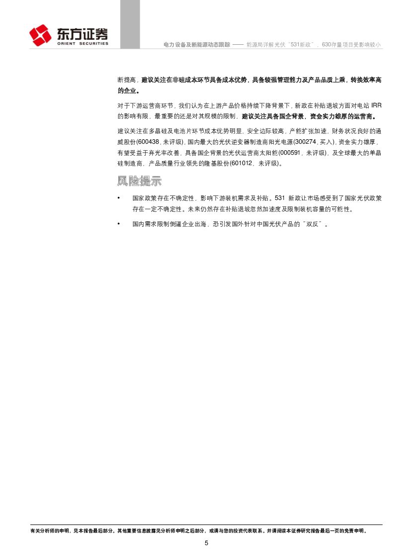 东方证券:电力设备及新能源行业:能源局详解光伏“531新政”,630存量项目受影响较小.pdf