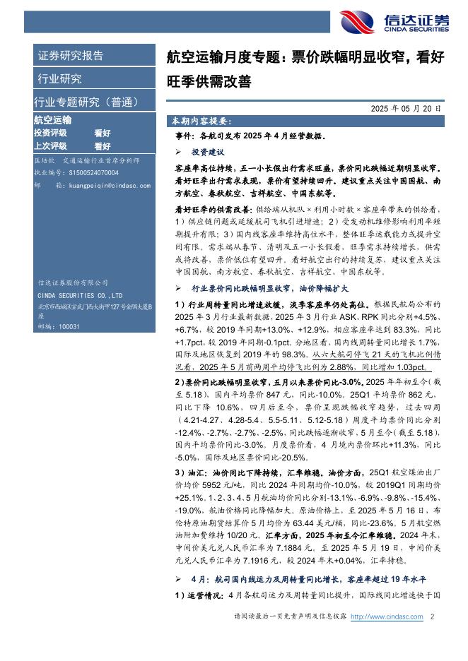 信达证券:航空运输月度专题:票价跌幅明显收窄,看好旺季供需改善.pdf