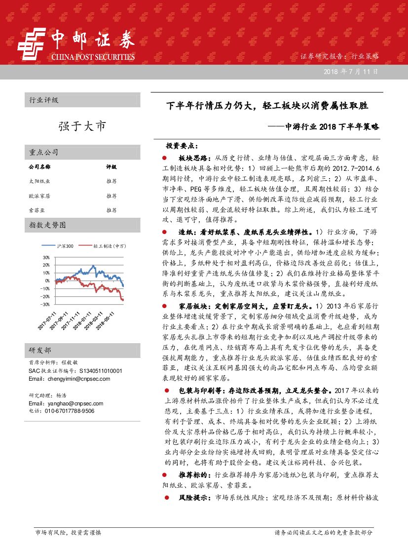 中邮证券:中游行业2018下半年策略:下半年行情压力仍大,轻工板块以消费属性取胜.pdf