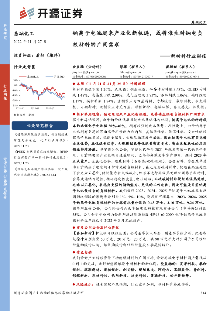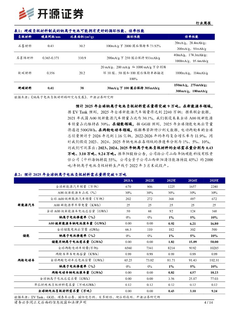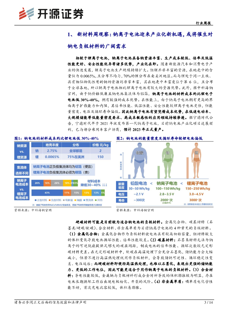 开源证券:新材料行业周报:钠离子电池迎来产业化新机遇,或将催生对钠电负极材料的广阔需求.pdf