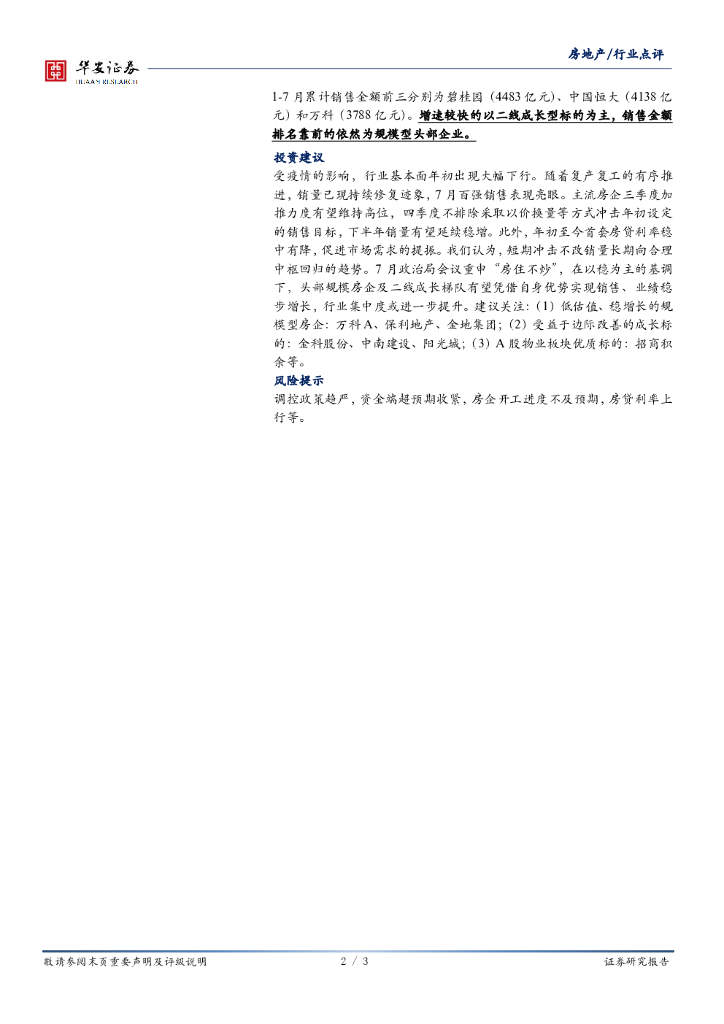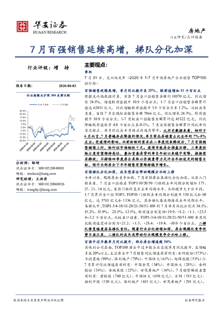 华安证券:房地产:7月百强销售延续高增,梯队分化加深.pdf